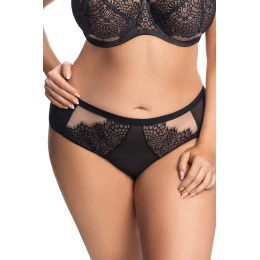 Predný diel nohavičiek je vyrobený z dvoch vrstiev tylu (béžového v spodnej časti a čierneho vo vrchnej časti) az dvoch vsadiek z jemnej vzorovanej čipky. Zadný diel modelu tvorí mikrovlákno a ľahko priesvitný čierny pružný tyl. Predný aj zadný diel nohavičiek sú v spodnej časti obšité tenkou pružnou páskou.