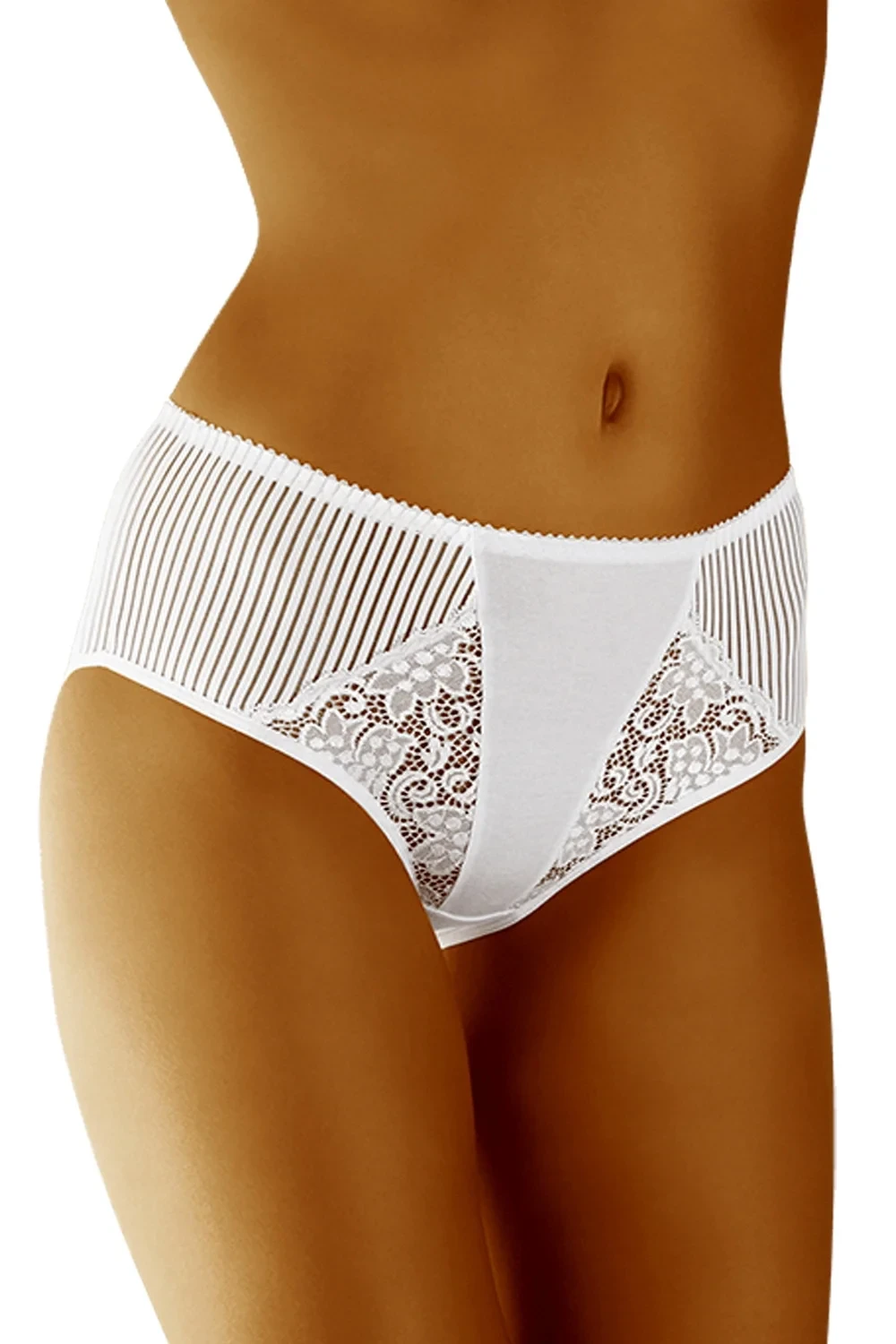 Dámske nohavičky eco-MI white Wol-bar - biela farba - mierne elastické - zdobené krásnou čipkou Zloženie materiálu: 90% bavlna + 7% elastan + 3% polyamid