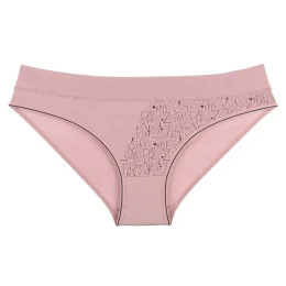 Dámske nohavičky Frieda. Dámske nohavičky v klasickom strihu s elastickým pásom majú čiastočne potlačenú prednú stranu s malými písmenami. Použitý materiál je mäkký a hebký na dotyk.
