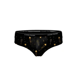 Dámské kalhotky střihu hipster od značky John Frank z limitované vánoční kolekce. Bavlněné kalhotky s módně zpracovaným potiskem jsou velmi příjemné na dotek a pohodlné při nošení. Jemná, středně široká guma v pase má kolem logo John Frank. Do vnitřního dílu je zapracován bavlněný klínek pro komfortní nošení. Kalhotky jsou baleny v dárkové krabičce.