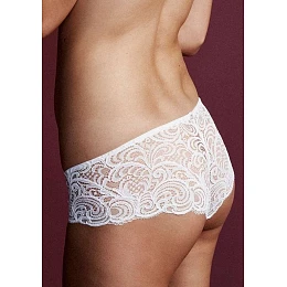 Dámske šortky od talianskej značky Lormar v celoplošnom strihu. Čipka je priesvitná. V strede zadnej časti je malé ozdobné logo Lormar. Do vnútornej časti je zakomponovaný bavlnený klin pre pohodlné nosenie.