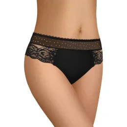 Boky a zadný diel modelu zdobí čipka s kvetinovým motívom. Predný diel nohavičiek je ozdobený malou mašličkou.