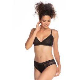 Predný diel nohavičiek je vyrobený z hladkej bavlny. Boky a zadný diel modelu sú ušité z efektnej čipky. V páse modelu je širšia ažúrová guma. Nohavičky sú balené po dvoch kusoch.