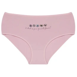 Dámske nohavičky Mirka. Dámske nohavičky klasického strihu. Nohavičky zdobí potlač kvetov a malý nápis. Použitý materiál je príjemný a pružný na dotyk.