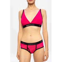 Růžové kalhotky značky Diesel s elastickým pasem vykládaným stříbrnou a lurexovou přízí.