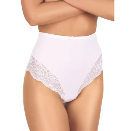 Kalhotky mají vysokou linii pasu a na bocích jsou plnější. Ve přední části modelu je krajkové lemování.