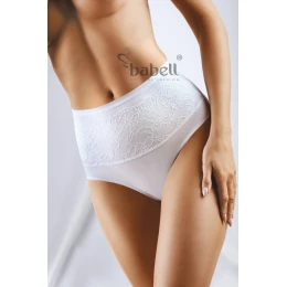 Dámské kalhotky 069 Babell - jsou ušité z vysoce kvalitní a pohodlné bavlny, která zajišťuje maximální komfort při nošení - vyššího střihu - stahuje bříško a bedra - v přední části jsou ozdobené ažurovou krajkou - horní část kalhotek: 87% polyamid + 13% elastan