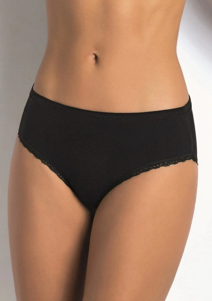 Dámské kalhotky klasického typu od italské značky Sielei z kolekce Perfetti. Hladké bavlněné kalhotky jsou ozdobeny po obvodu nohaviček květinovou krajkou. Kalhotky jsou jemné a velmi příjemné na každodenní nošení.