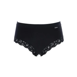 Dámské kalhotky klasického střihu značky Cotonella s vyšším pasem. Kalhotky jsou kombinací hladké látky a květinové krajky v přední části obvodu nohaviček. V horním obvodu je vsazena aplikace s logem Cotonella. Do vnitřního dílu je zapracován bavlněný klínek z BIO bavlny pro komfortní nošení.