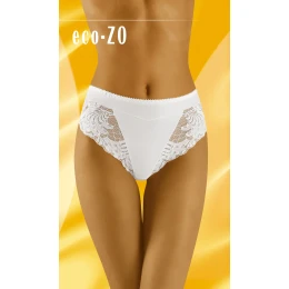 Dámské kalhotky ušité z ekologické bavlny s přídavkem lycry. Ozdobené jsou krajkovými všivkami.