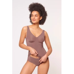 Kalhotky mají pohodlné širší boky. Model má bezešvé lemování v pase a na nohavičkách. Boční švy jsou lehce přesunuté do přední části a jsou ploché, a proto jsou zárukou měkkého a bezešvého povrchu. Rozkrok je měkký a bezešvý a poskytuje více pohodlí a komfortu. Kalhotky jsou vyrobené z ultra lehké a tenké tkaniny 3D-ZERO s hedvábně hladkým povrchem.