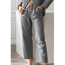 Dámske nohavice na spanie od spoločnosti L&L sú kombináciou štýlu a pohodlia. Sú vyrobené zo 100 % prvotriednej bavlny, sú mäkké, priedušné a šetrné k pokožke. Módna tkaná tkanina dodáva jedinečný nádych, zatiaľ čo elastický pás so šnúrkou umožňuje dokonalé prispôsobenie. Vrecká vo výške bokov dodávajú funkčnosť a pohodlie.