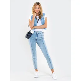 Džínsy pre mamičky - váš dokonalý pár je práve tu, vysoký priehlavok, pútka na opasok, rázporok na zips, päť vreciek, úzka zúžená nohavica, sedí na členku, uvoľnený strih.