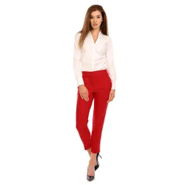 Zapínanie na gombík a zips s vreckami. Pohodlné a elegantné, 7/8 nohavice, vyšší pás. Hodí sa na každú príležitosť: do práce, na skúšky alebo na stretnutie s priateľmi. Odporúčame každej žene, ktorá si cení dokonalý vzhľad každý deň. Jedinečný strih, elegantný a šik, dokonale šitý na mieru, prepracovaný v každom detaile, dokonalý doplnok každého stylingu.