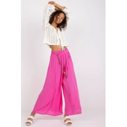 Materiálové nohavice so širokými nohavicami, v páse na gumu. Nohavice s ozdobným pásikom.