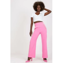 Dámske nohavice s vysokým pásom a ozdobnými gombíkmi na prednej strane. Nohavice s krytým zipsom. Nohavice s nakladanými vreckami.