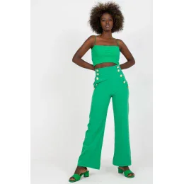 Dámske nohavice s vysokým pásom a ozdobnými gombíkmi na prednej strane. Nohavice s krytým zipsom. Nohavice s nakladanými vreckami.