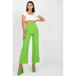 Dámske nohavice s vysokým pásom a ozdobnými gombíkmi na prednej strane. Nohavice s krytým zipsom. Nohavice s nakladanými vreckami.