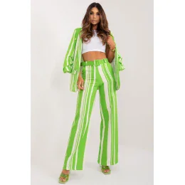 Nohavice z materiálu so zapínaním na zips a gombík sú ideálnou voľbou pre ženy, ktoré ocenia eleganciu a pohodlie. Vďaka klasickému strihu a prevedeniu sú univerzálnym kúskom šatníka vhodným na rôzne príležitosti. Vďaka elegantnému strihu sú tieto nohavice skvelou voľbou na každodenné nosenie aj formálnejšie udalosti. Široké nohy dodávajú šarm a triedu a zároveň poskytujú pohodlie. Sú ideálne na každodenné nosenie a umožňujú vytvoriť pohodlný a elegantný outfit. Skvelá voľba na obchodné stretnutia, obedy alebo večere, kde sa vyžaduje formálnejší oblek. Vďaka svojmu elegantnému vzhľadu a módnemu pruhovanému vzoru sa tieto nohavice hodia aj na všetky druhy večierkov. Nohavice sú vyrobené z kvalitného polyesteru, ktorý je odolný a nemačkavý. Pruhovaný materiál im dodáva moderný vzhľad.. Nohavice s vysokým strihom zvýrazňujú pás a zabezpečujú pohodlie pri nosení, čím dodávajú telu elegantný vzhľad. Široké nohavice sú módnou voľbou, ktorá poskytuje voľnosť pohybu a elegantný vzhľad. Tento strih je nielen pohodlný, ale zároveň dodáva štýlu sofistikovanosť. Zapínanie na zips a gombík: Klasické zapínanie poskytuje pohodlie a bezpečnosť. Opasok so zapínaním dodáva nohaviciam štýl a umožňuje im dokonale sa prispôsobiť tvaru tela. Pohodlné a diskrétne vrecká sú praktické a funkčné bez toho, aby stratili na elegancii. Tieto nohavice sú skvelou voľbou pre ženy, ktoré ocenia kombináciu elegancie, pohodlia a moderného štýlu.