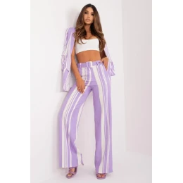 Nohavice z materiálu so zapínaním na zips a gombík sú ideálnou voľbou pre ženy, ktoré ocenia eleganciu a pohodlie. Vďaka klasickému strihu a prevedeniu sú univerzálnym kúskom šatníka vhodným na rôzne príležitosti. Vďaka elegantnému strihu sú ideálne nielen na každodenné nosenie, ale aj na slávnostné príležitosti. Široké nohy dodávajú šmrnc a eleganciu a zároveň poskytujú pohodlie. Sú ideálne na každý deň a umožňujú vytvoriť pohodlný a zároveň elegantný vzhľad. Skvelá voľba na obchodné stretnutia, obedy alebo večere, kde sa vyžaduje formálne oblečenie. Vďaka svojmu elegantnému vzhľadu a módnemu pruhovanému vzoru sa tieto nohavice hodia aj na všetky druhy večierkov. Nohavice sú vyrobené z kvalitného polyesteru, ktorý je odolný a nemá tendenciu sa mačkať. Pruhovaný materiál im dodáva moderný vzhľad a odlišuje ich od ostatných nohavíc. Vysoký pás zvýrazňuje postavu, poskytuje pohodlie pri nosení a dodáva siluete elegantný vzhľad. Široké nohavice sú módnou voľbou, ktorá poskytuje voľnosť pohybu a elegantný vzhľad. Tento strih je nielen pohodlný, ale zároveň zvýrazňuje jemnosť oblečenia. Zapínanie na zips a gombík: Klasické zapínanie poskytuje pohodlie a bezpečnosť. Spona dodáva nohaviciam štýl a umožňuje ich dokonalé prispôsobenie telu. Vložené vrecká sú praktické a diskrétne a dodávajú funkčnosť bez straty elegancie. Tieto nohavice sú skvelou voľbou pre ženy, ktoré ocenia kombináciu elegancie, pohodlia a moderného štýlu.