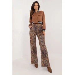 Ležérne, elegantné nohavice so zvieracou potlačou, ideálne na každý deň a do práce. Sú vyrobené z príjemnej zmesi bavlny, polyesteru a elastanu, poskytujú pohodlie a ľahko sa prispôsobia telu. Majú vysoký pás, ktorý zvýrazňuje pás, a rovné nohavice dodávajú klasický, nadčasový vzhľad. Nohavice sa zapínajú na gombíky a zips a bočné, vsúvacie vrecká im dodávajú funkčnosť a mestský charakter. Skvelá voľba pre elegantný štýl s nádychom voľnosti.