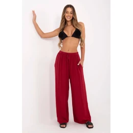 Ľahké, ženské a neuveriteľne pohodlné palazzo nohavice sú ideálnou voľbou na každodenný, ležérny štýl. Sú vyrobené z priedušnej viskózy, sú ideálne na teplejšie dni a poskytujú pohodlie a voľnosť pohybu. Model s vysokým pásom a šnúrkou v páse krásne zvýrazňuje pás, zatiaľ čo široké nohavice dodávajú stylingu ľahkosť a modernosť. Absencia zapínania a vreciek zdôrazňuje minimalistický, hladký strih, ktorý možno ľahko kombinovať buď s priliehavým topom, alebo s voľným tričkom. Je to povinný kúsok v šatníku každej ženy, ktorá oceňuje pohodlie v elegantnom dizajne.