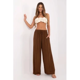 Ľahké, ženské a neuveriteľne pohodlné nohavice palazzo sú ideálnou voľbou na každodenný, ležérny štýl. Sú vyrobené z priedušnej viskózy, sú ideálne na teplejšie dni a poskytujú pohodlie a voľnosť pohybu. Model s vysokým pásom a viazaním v páse krásne zvýrazňuje pás, zatiaľ čo široké nohavice dodávajú stylingu ľahkosť a modernosť. Absencia zapínania a vreciek zdôrazňuje minimalistický, hladký strih, ktorý možno ľahko skombinovať buď s priliehavým topom, alebo s voľným tričkom. Je to povinný kúsok v šatníku každej ženy, ktorá si cení pohodlie v elegantnom dizajne.