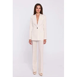 Elegantní dámské tkané kalhoty, které se vyznačují rozšířenými nohavicemi ve spodní části, jež dodávají siluetě lehkost a prodlužují nohy. Lisovaný okraj zdůrazňuje jejich klasický a rafinovaný charakter, ideální pro pracovní i formální příležitosti. Kalhoty mají vysoký náplet, který krásně zvýrazňuje pas, zatímco krytý zip v zadní části zajišťuje hladké a diskrétní zapínání. Jsou navrženy a ušity v Polsku a kombinují vynikající kvalitu zpracování s módním, ženským střihem.