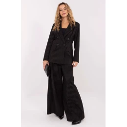 Stylové dámské látkové kalhoty typu palazzo jsou skvělou volbou na každý den, do práce a na společenské události, kdy se počítá s elegancí a moderním tvarem. Jejich decentní pruhovaný vzor opticky zjemňuje postavu a zároveň dodává kalhotám elegantní, klasický charakter. Model je vyroben z vysoce kvalitní směsi nylonu, viskózy, elastanu a polyesteru, díky čemuž jsou kalhoty lehké, prodyšné, elastické a pohodlné na nošení. Vysoký pas krásně zdůrazňuje pas, zatímco široké nohavice typu palazzo dodávají celku volnou, avšak velmi elegantní linii. Na horní části přední části jsou ozdobné záložky, které kalhotám dodávají výjimečný charakter a jemně podtrhují elegantní styl. Praktické zapínání na zip a knoflík zajišťuje pohodlí a stabilní přizpůsobení. Jedná se o kalhoty, které spojují nadčasový styl s moderním střihem, ideální pro ženy, které ocení eleganci, pohodlí a rafinované detaily.
