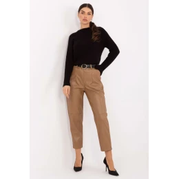 Tieto štýlové a pohodlné dámske nohavice z ekokože sú ideálnou voľbou pre ženy, ktoré oceňujú kombináciu elegancie a pohodlia. Neopozeraný model s elastickým pásom na zadnej strane perfektne sedí a uľahčuje obliekanie. Vysoký pás jemne zvýrazňuje pás a zúžené nohavice dodávajú celku moderný, ženský charakter. Nohavice sú vyrobené z mäkkej ekokože (kombinácia polyester + polyuretán), ktorá zaručuje odolnosť, pohodlie a výrazný vzhľad. Bočné vrecká s vložkou dodávajú funkčnosť a zapínací pás umožňuje individuálne nastavenie v páse. Vďaka zateplenej podšívke sú nohavice vhodné aj na chladnejšie dni. Ich hladký vzor a uvoľnený štýl z nich robia skvelú voľbu do práce aj na každý deň.