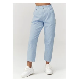 Elegantné dámske strečové nohavice s módnym a jednoduchým strihom sú ideálnou voľbou pre ženy, ktoré ocenia pohodlie a nadčasový štýl. Sú vyrobené z mäkkej a na dotyk príjemnej strečovej tkaniny, krásne sedia na postave a zaručujú pohodlie počas celého dňa. Model s vysokým pásom zvýrazňuje pás a opticky predlžuje nohy, zatiaľ čo mierne skrátené nohavice dodávajú celému outfitu moderný charakter. Nohavice sú ideálne na každodennú štylizáciu s teniskami aj na elegantnejšie kombinácie s členkovými topánkami alebo mokasínami. Vyrobené v Taliansku.