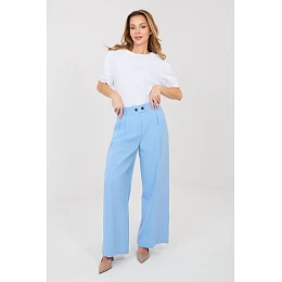 Tieto elegantné dámske nohavice so širokými nohavicami sú skvelou voľbou na každý deň, do práce aj na slávnostné udalosti. Sú vyrobené z kvalitného polyesteru s prídavkom elastanu, poskytujú pohodlie pri nosení, odolnosť a jemnú elasticitu, ktorá umožňuje voľnosť pohybu. Hladký materiál im dodáva klasický a nadčasový charakter. Model s vysokým pásom krásne zvýrazňuje pás a opticky predlžuje postavu, zatiaľ čo dlhé, široké nohavice dodávajú štýlu ľahkosť a eleganciu. Nohavice sa zapínajú na zips a gombíky, čo zaručuje dobré prispôsobenie. Praktické bočné vrecká zvyšujú funkčnosť a jednoduchosť používania. Skvele sa hodia ku košeli a saku, ako aj k ležérnejšej blúzke.