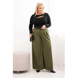 Dámské kalhoty Plus Size s širokou nohavicí a páskem khaki