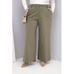 Dámské kalhoty Plus Size s širokým nohavicí a vysokým pasem khaki