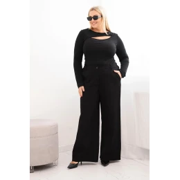 Tyto elegantní dámské kalhoty s širokými nohavicemi jsou vynikající volbou pro ženy, které ocení pohodlí a styl na každodenní nošení, do práce nebo na speciální příležitosti. Vyrobeny z měkkého materiálu s příměsí viskózy, zajišťují komfort nošení a volnost pohybu po celý den. Jejich klasický střih s elastickým pasem a knoflíkovým zapínáním zajišťuje dokonalé přizpůsobení postavě, zatímco široké nohavice dodávají lehkost a moderní vzhled.