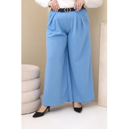 Plus veľkosť dámske široké nohavice z viskózy s opaskom modrá