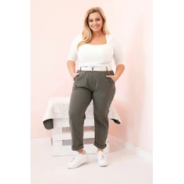 Dámské kalhoty Punto Milano Winter Plus Size s páskem khaki