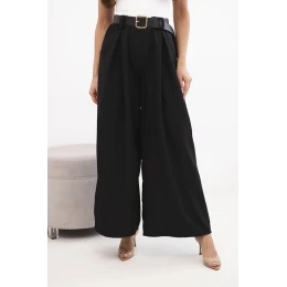 Tyto elegantní dámské kalhoty s širokými nohavicemi jsou ideální volbou pro ženy, které si cení stylu a pohodlí. Vyrobené z lehkého, příjemného materiálu, skvěle se hodí jak do kancelářských stylizací, tak na každodenní nošení. Další výhodou je klasický pásek v pase, který zvýrazňuje siluetu a dodává eleganci.