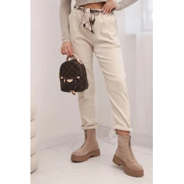 Dámské kalhoty z viskózy s model 21774715 páskem béžové - K-Fashion