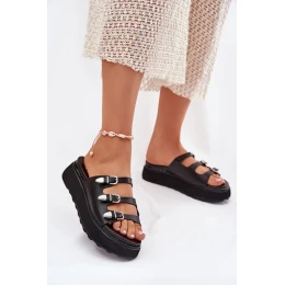 Klapki Damskie Na Platformie Z Paskami Czarne Nimiotte