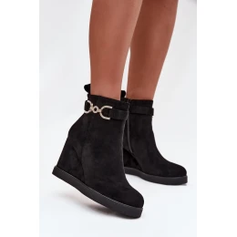 Botki Damskie Na Koturnie Z Ozdobnym Detalem Czarne Marivana