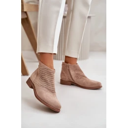 Dámské Kotníkové Boty Na Plochém Podpatku Ažurové Béžové S.Barski
