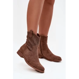 Dámske členkové topánky na plochom podpätku s ažurovým vzorom S.Barski - hnedé