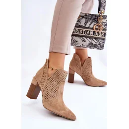 Dámske členkové topánky na podpätku A8801-63 Béžová - Bella Paris