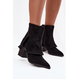Dámské kotníkové boty na podpatku s lemem Černé model 21714371 - Boto