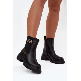 Dámské kotníkové boty se zlatým detailem zateplené černé model 21710118 - Boto