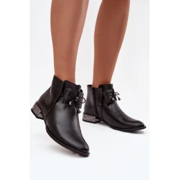 Dámské kotníkové boty z pravé kůže na nízkém podpatku Zazoo 1396 Černé