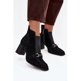 Botki Damskie Z Naturalnego Zamszu Na Słupku Artiker 57C0124 Czarne