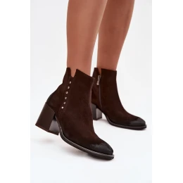 Dámské kotníkové boty z přírodního semiše na podpatku model 21713301 čokoládové - Zazoo