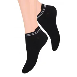 Dámske členkové ponožky s jazykom. Ušité sú z bavlny (54%) a polyamidu (42%) s prídavkom elastanu. Vďaka špeciálnemu tvaru sa nesesouvají z chodidla. V hornej časti sú dva prúžky s nitkou lurex.